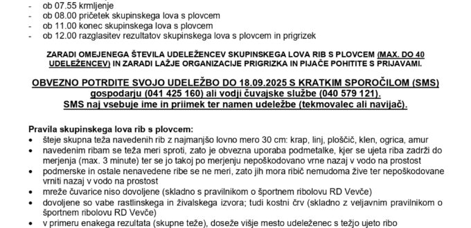 20. ŠEBENIKOV MEMORIAL Spoštovani člani RD Vevče vjudno Vas vabimo, da se udeležite tradicionalnega 20. ŠEBENIKOVEGA MEMORIALA, ki bo potekal V NEDELJO 21.9.2025 OB 7.00 URI. Veselimo se vaše udeležbe in prosimo, da se najavite v primeru, da se boste udeležili dogodka. Dodatne podakte lahko najdete na povezavi: Vabilo 2025_Šebenikov memorial Dober prijem Gospodar RD […]